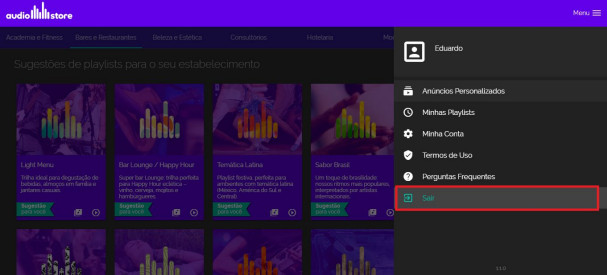 2- Clique em “Sair” e você será desconectado automaticamente da sua rádio Audiostore Free, veja: