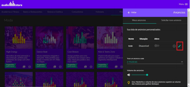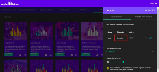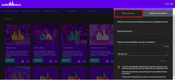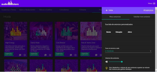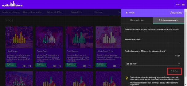 você poderá solicitar anúncios da sua marca para tocar na sua rádio. Basta você clicar em