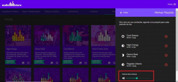 7- Você visualizará todas as playlists e poderá aumentar o volume da sua rádio: