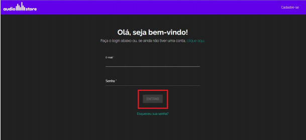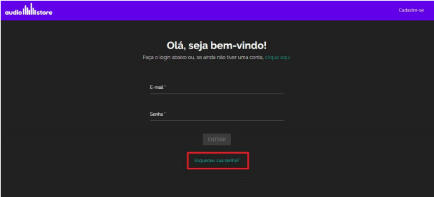 1- Acesse www.audiostore.com.br e clique no botão “Esqueceu sua senha?”, conforme mostrado abaixo: